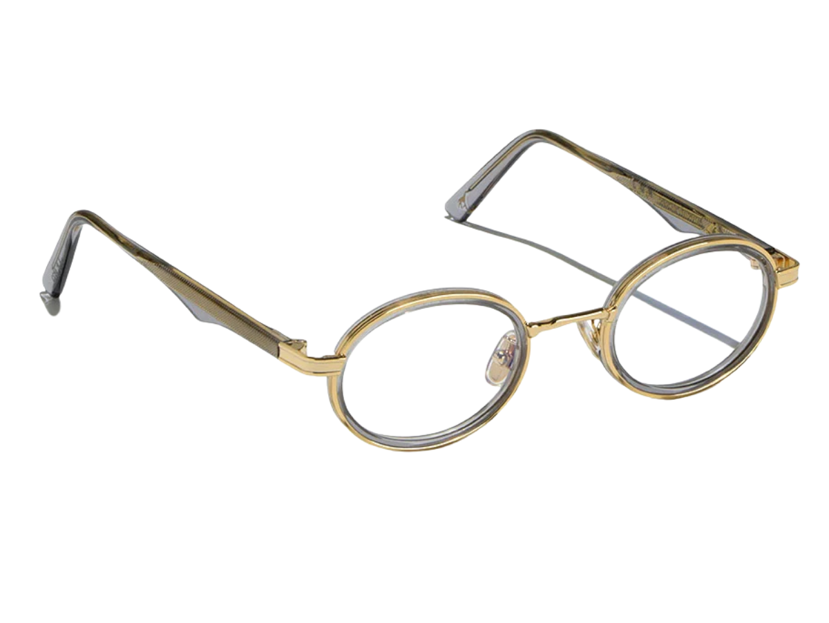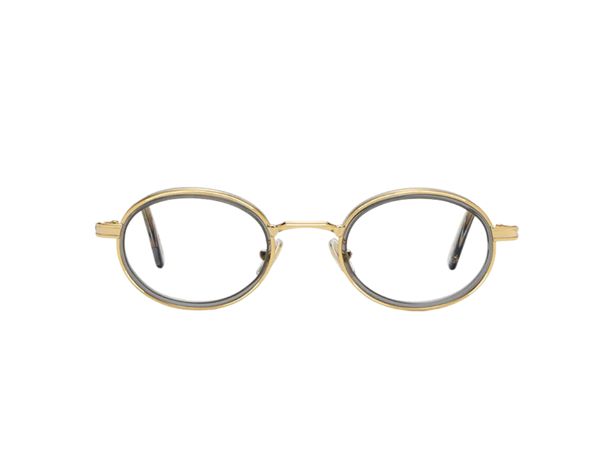 Armação robusta em acetato com toque intelectual e traços art déco. Óptima para perfis criativos.